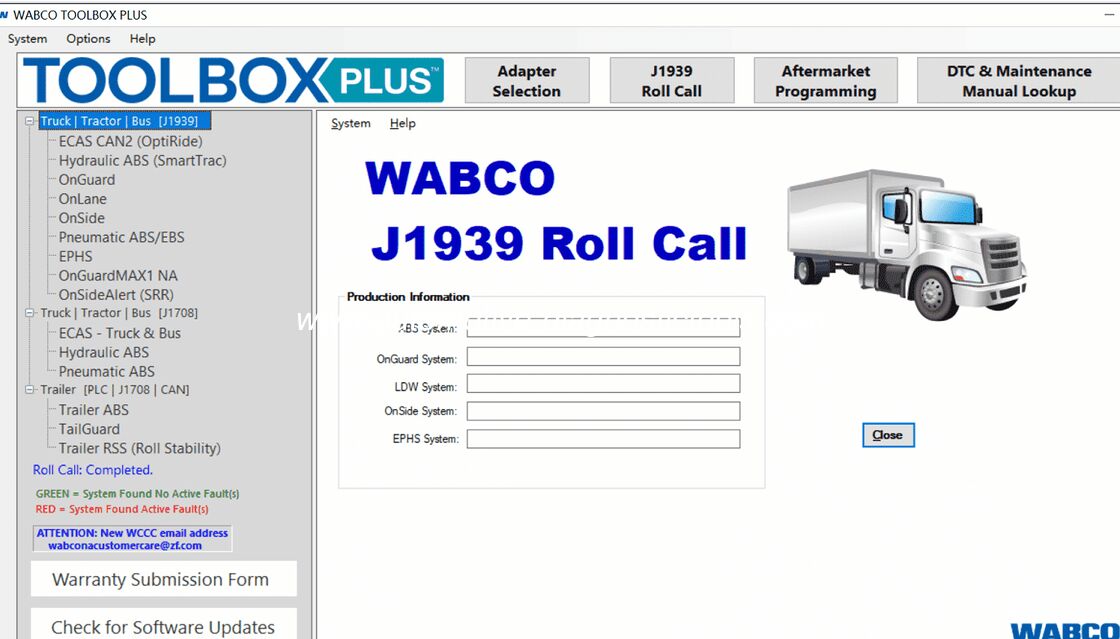 ABCO TOOLBOX PLUSè un software di diagnostica avanzato progettato per supportare la gamma completa di prodotti WABCO, inclusi ABS, controllo della stabilità e sistemi di mitigazione delle collisioni.Permette ai tecnici di eseguire diagnosi, test di sistema e programmazione ECU utilizzando interfacce diverse.